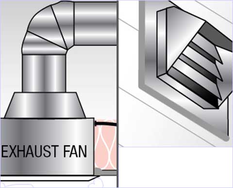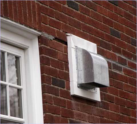 - Make sure any exhaust vents that vent through the side of the house close properly. These are little metal or plastic things you see on the side of your house that vent things like bathroom fans, clothes driers, and range hoods. What can happen is that the cold air gets in the exhaust ducts, and adjacent interior pipes freeze and burst. The vents usually have flaps or louvers outside and you need to make sure they close when the exhaust fans are turned off. |