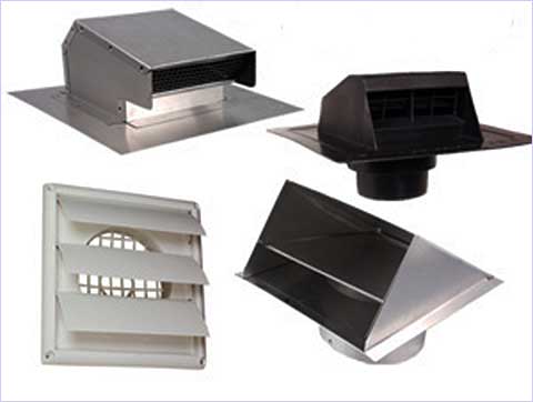 are some different styles of exhaust vents. The bottom left one is louvered, while the bottom right one has a hinged flap. |
