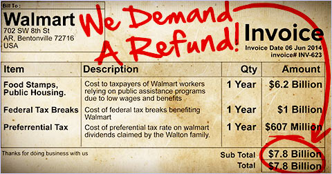 Enough is enough! Walmart's billions of dollars in profit have literally been snatched from taxpayers' wallets. It's time for us to get reimbursed! Related: - http://other98.com/walmart-go-subsidize-yourself Artwork (may include photos, images, audio, and/or video): - http://other98.com/walmart-go-subsidize-yourself |